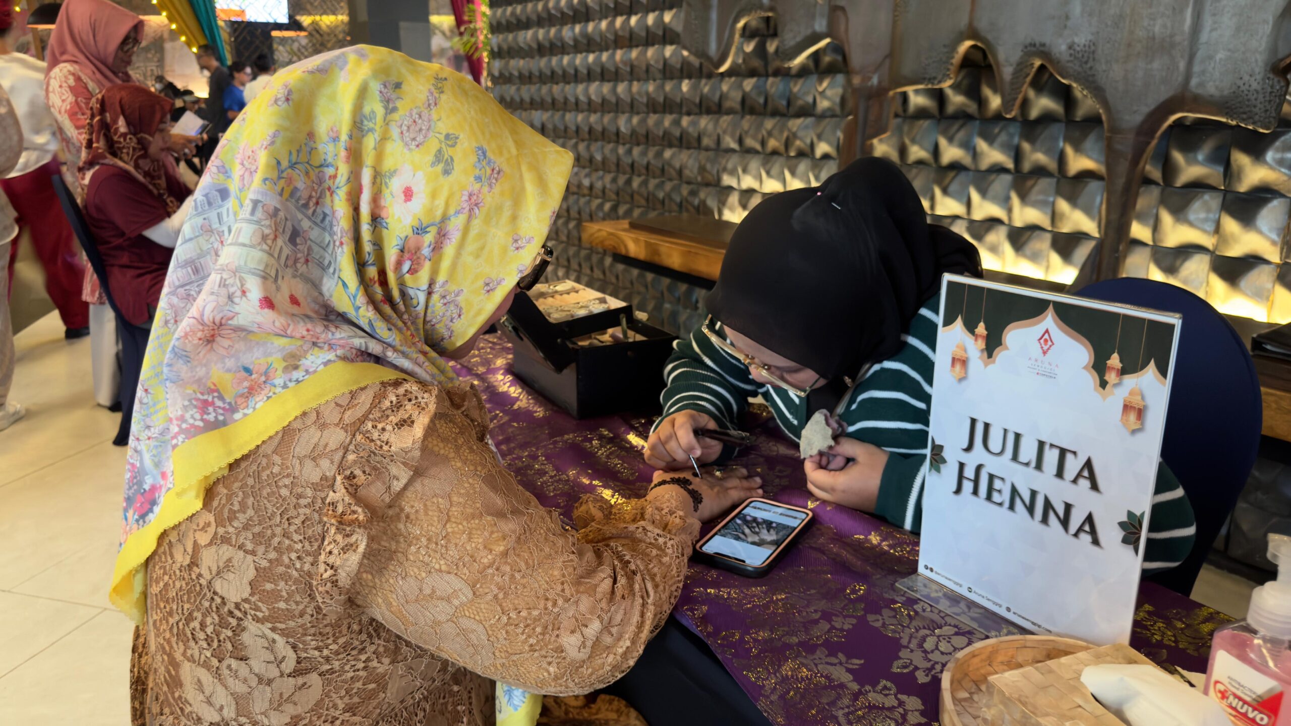 Menunggu waktu berbuka puasa di Aruna Senggigi Hotel tidak hanya sekadar menikmati suasana dan hidangan lezat, tetapi juga diisi dengan berbagai aktivitas menarik. Salah satu daya tarik utama adalah layanan henna art yang bekerja sama dengan Julita Henna, memungkinkan para tamu untuk menghias tangan mereka dengan motif artistik khas Timur Tengah.