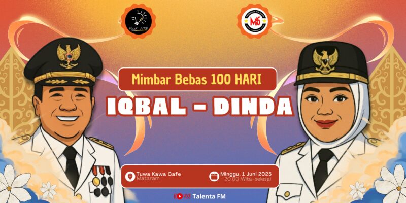 Rencananya, Mimbar Bebas 100 Hari Iqbal-Dinda akan digelar Pojok NTB dan Mi6 di Tuwa Kawa Coffee Roastery, 1 Juni 2025.